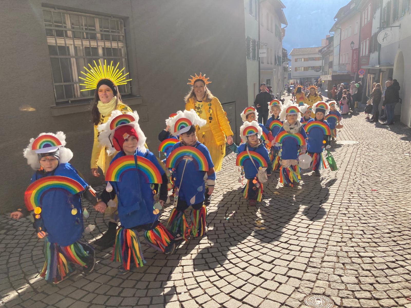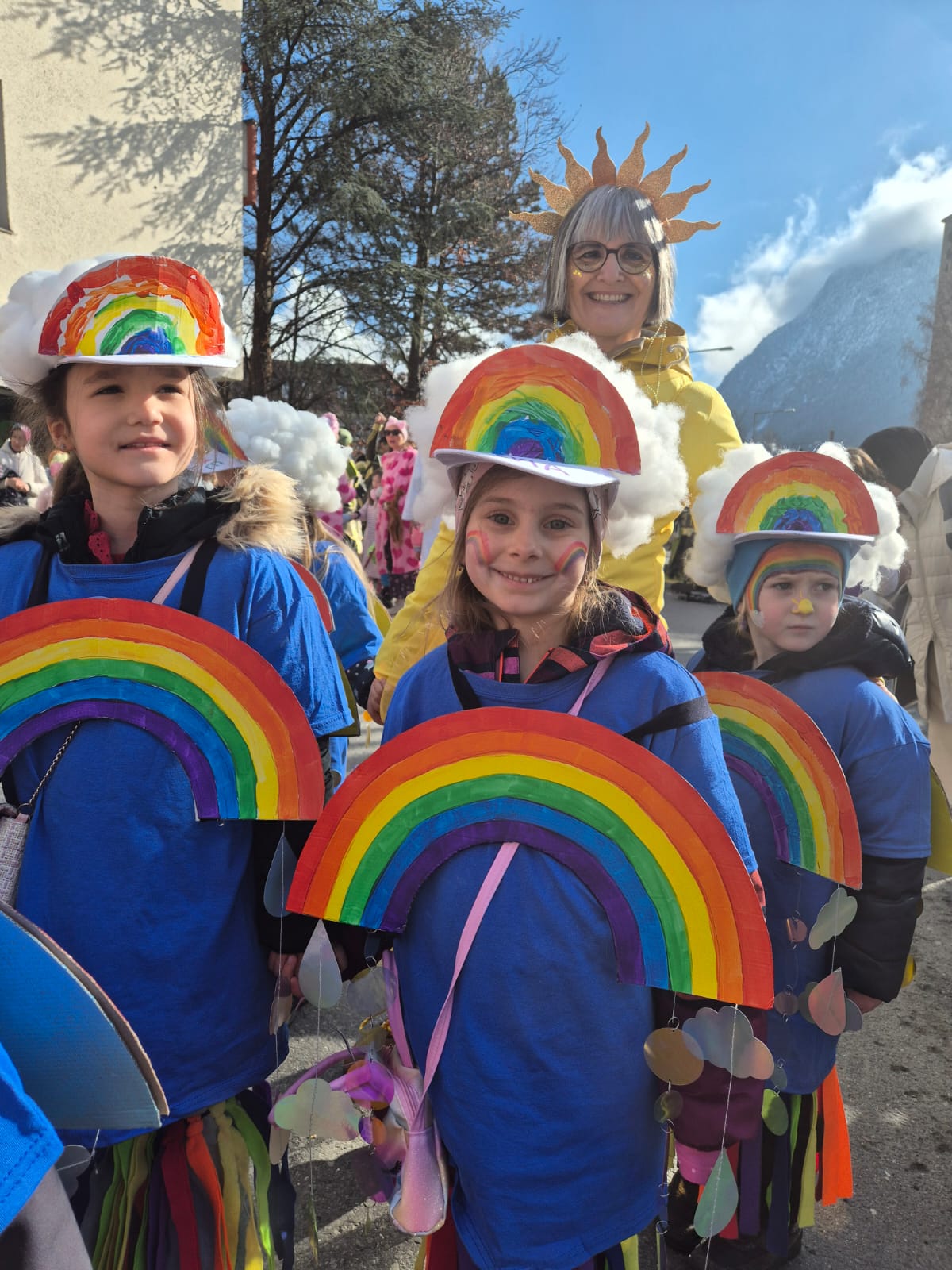 Im heurigen Jahr wählten wir als Faschingsmotto unser Jahresthema: REGENBOGEN wobei wir Pädagogen als Sonnen gingen.