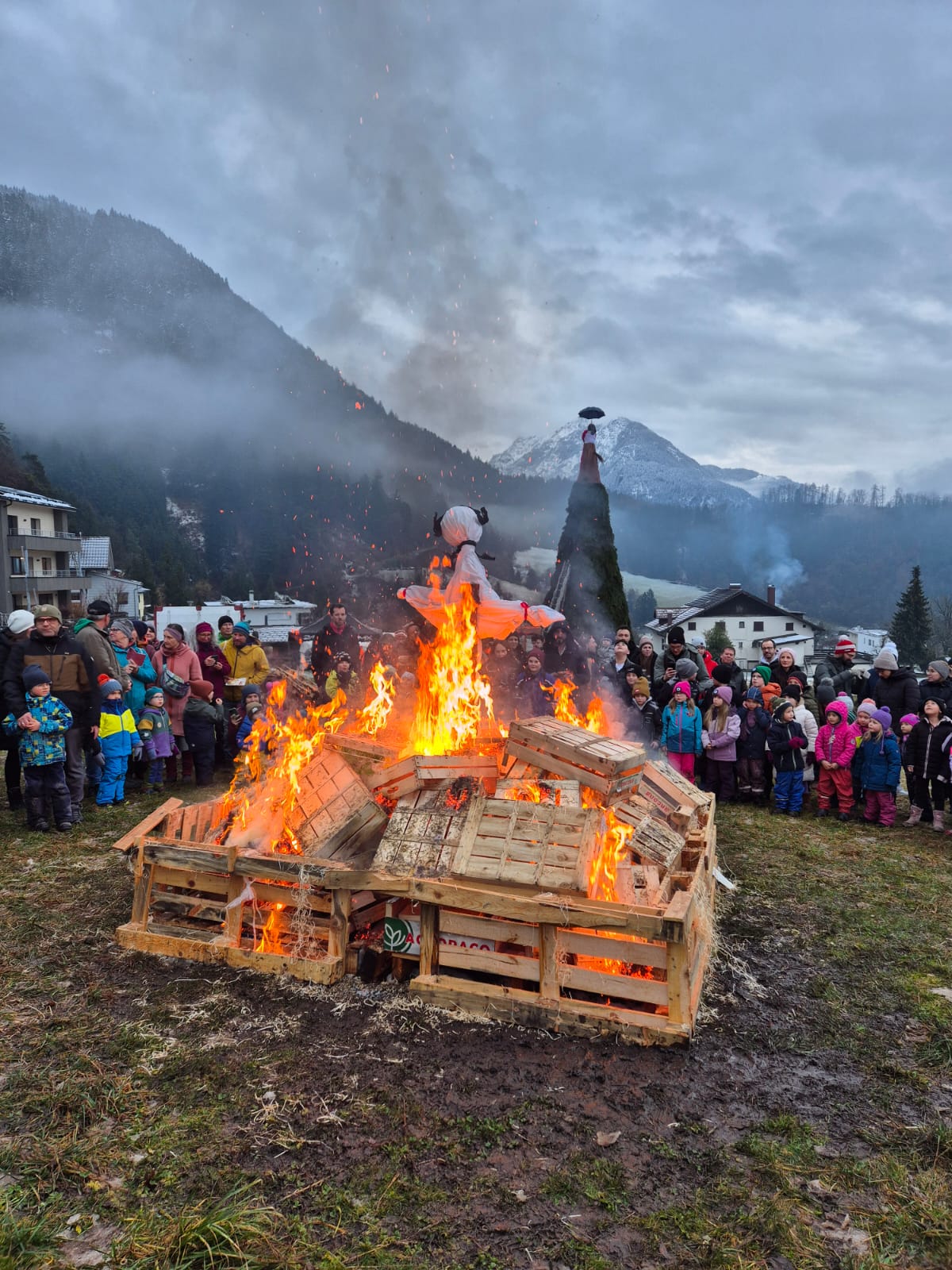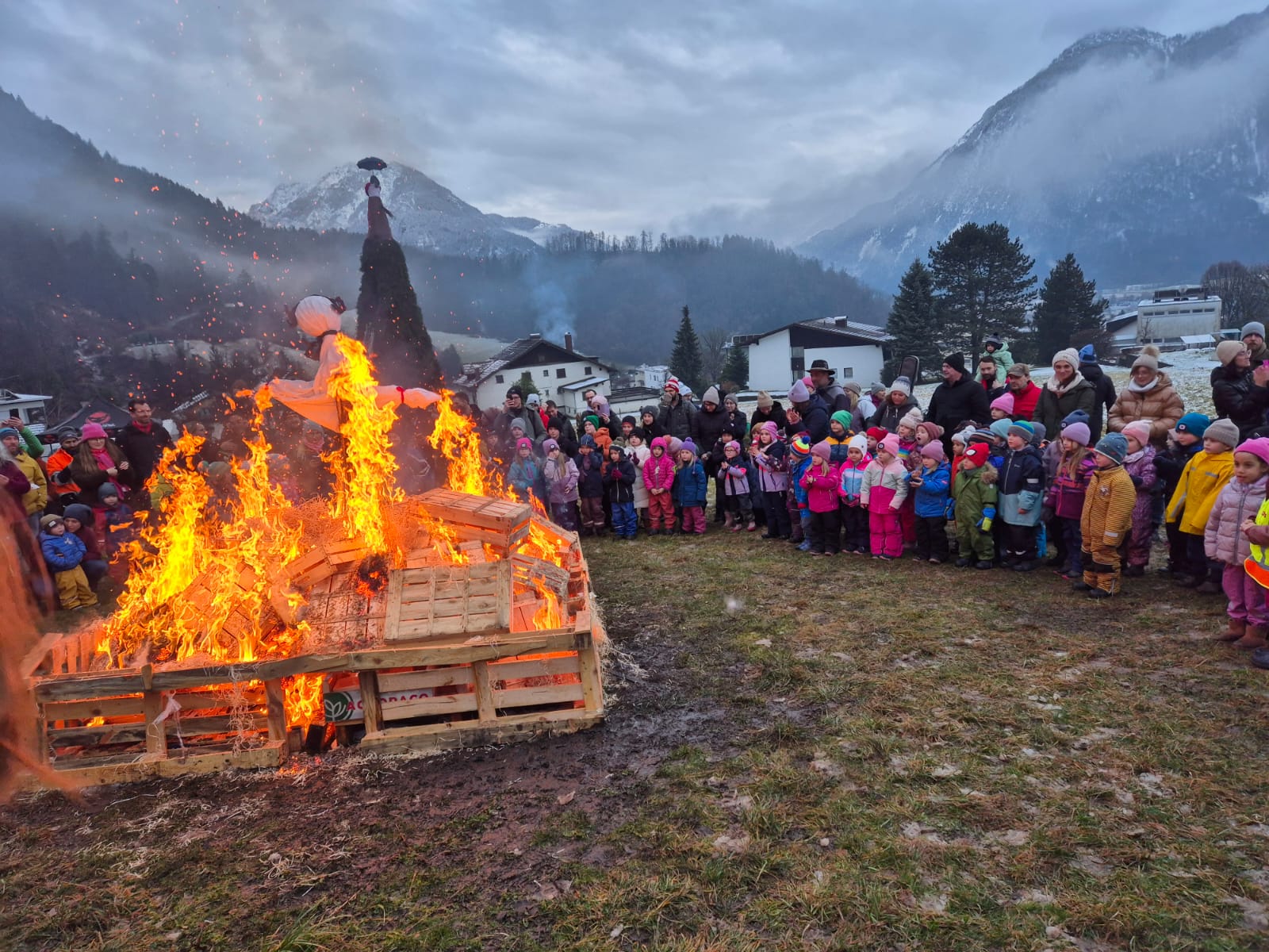 Nach 2 lauten und turbulenten Faschingstagen der Mäschgerle im Kindergarten wurden es allmählich ruhiger am Aschermittwoch, als das verbrennen der Faschingsgirlanden die Fastenzeit einläutetet und der Funken vor der Türe stand.