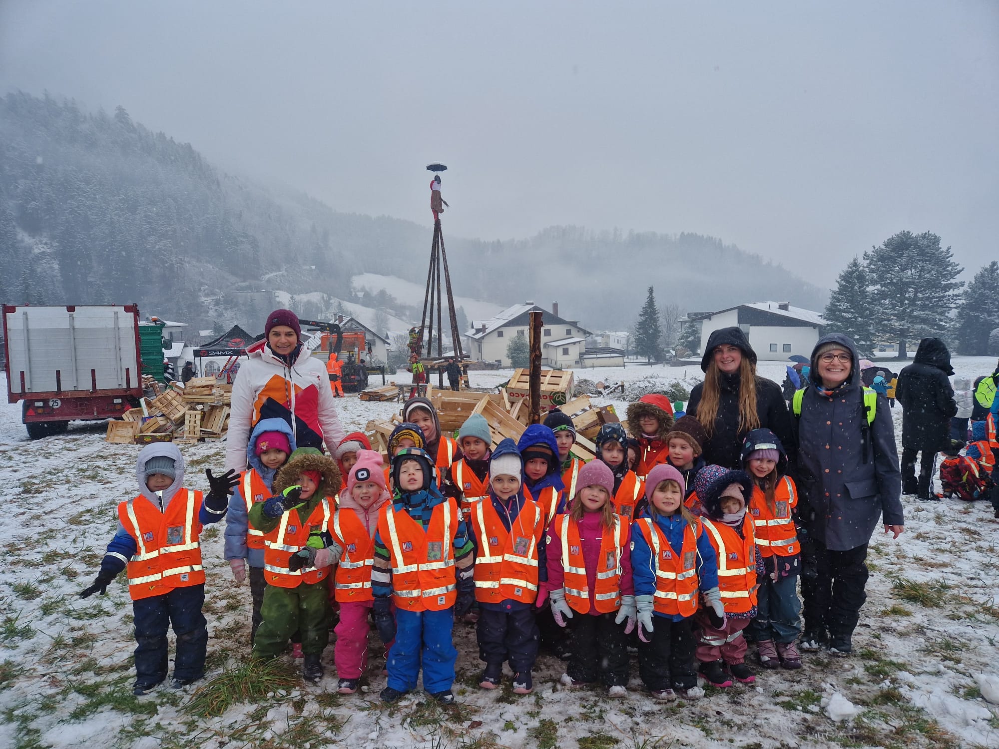 Eifrig bauten die Kinder den Kinderfunken im Obdorf, um am Abend den Winter auszutreiben, der aber an diesem Wochenende nocheinmal in voller Pracht „hallo“ sagte.