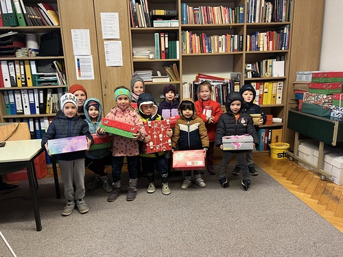 Um fremden Kindern eine Freude zu bereiten, haben wir auch heuer wieder für Weihnachten im Schuhkarton gesammelt. Einige Kinder aus allen vier Gruppen durften diese dann bei der Pfarre Herz Mariä abgeben.