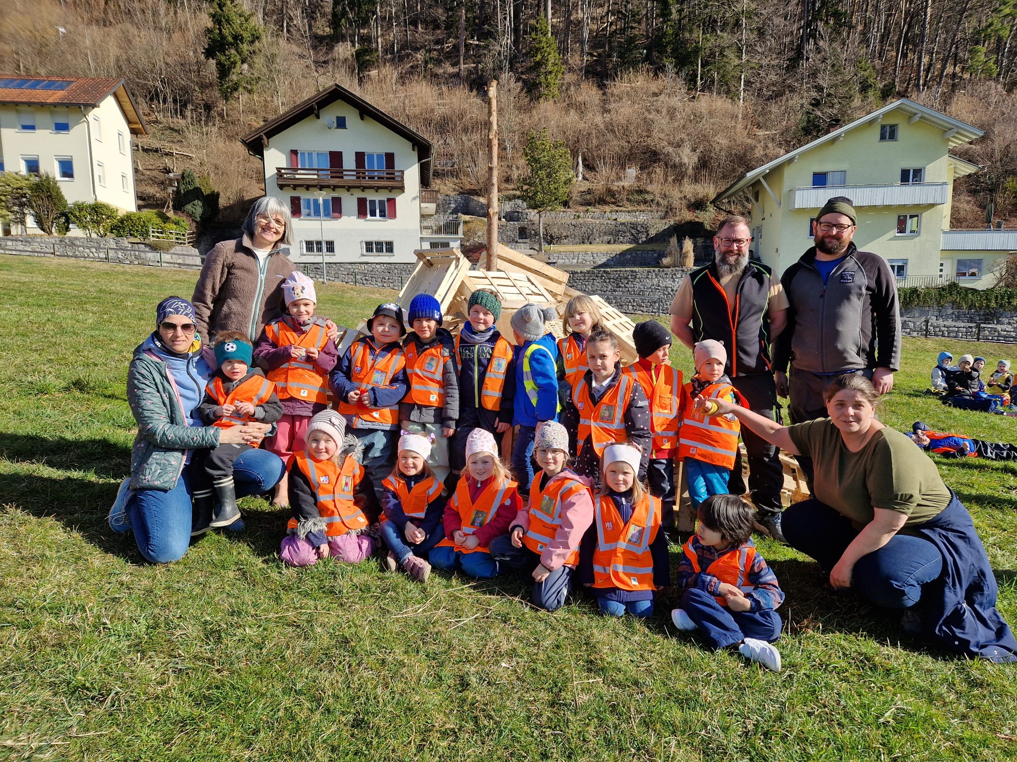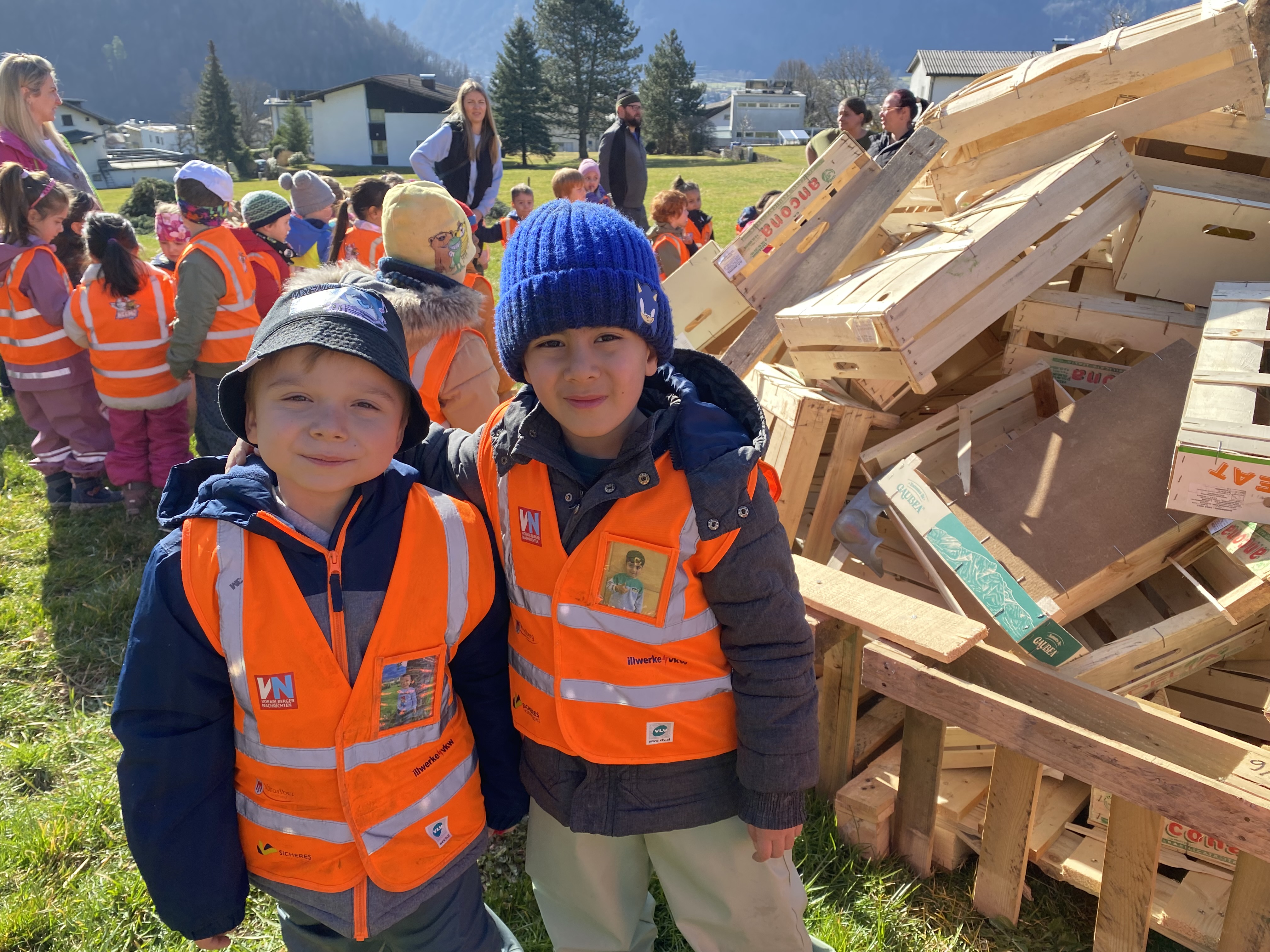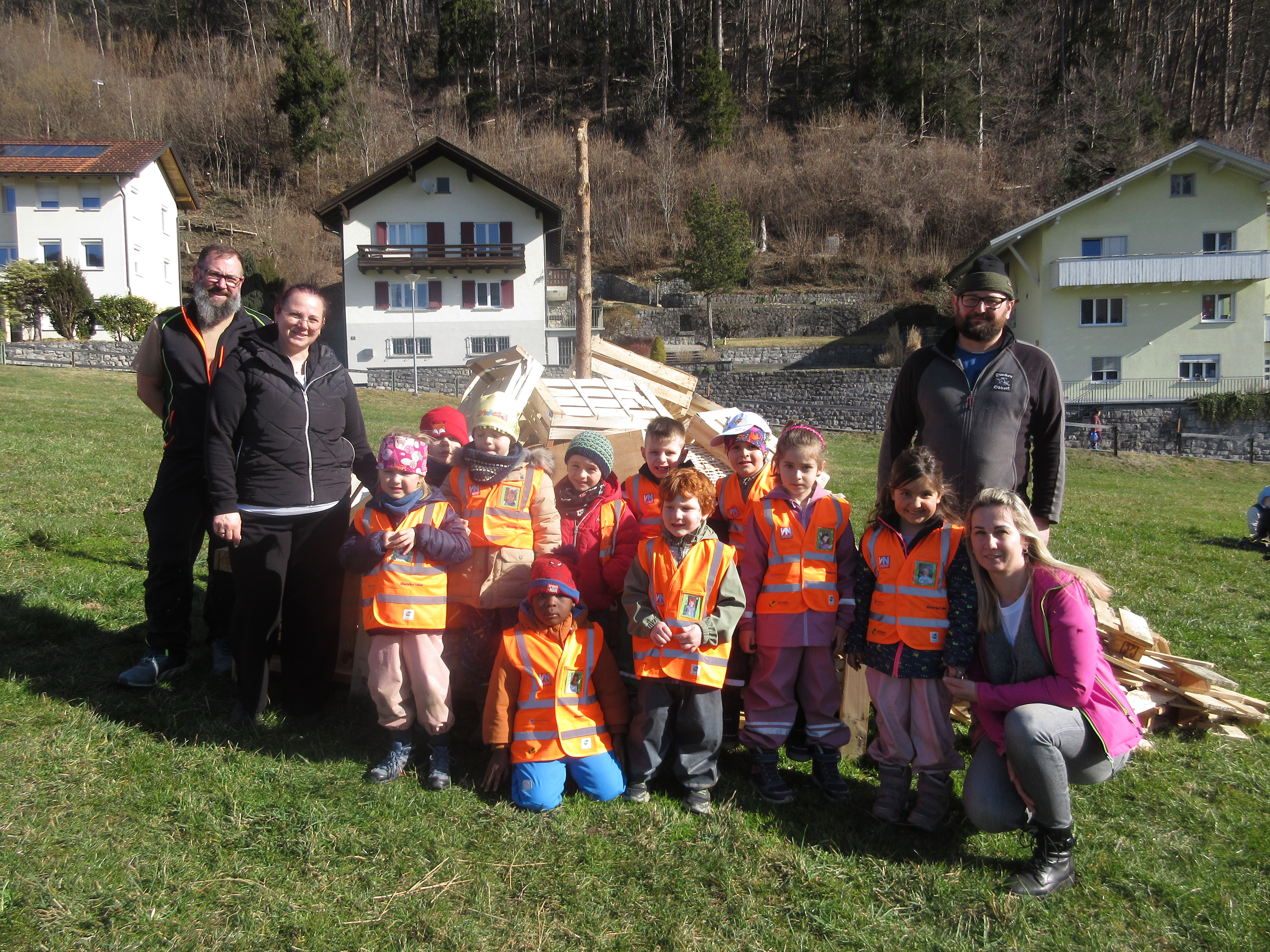 Am Freitag darauf packten die Kinder beim Funkenplatz eifrig mit an. Wir bauten mit der Hilfe der Bludenzer Funkenzunft unseren eigenen Kinderfunken. Am Abend versammelten sich viele Kinder mit ihren Eltern, Geschwistern, Großeltern, Freunden und Bekannten um unseren selbstgebauten Funken. Wir sangen unser beliebtes „Funkaliad“ und anschließend wurde unser Funken angezündete und der Winter somit verabschiedet.