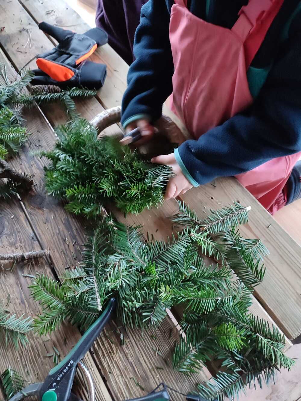 Baumschere, Kerzen und Dekomaterial selber mitbringen.